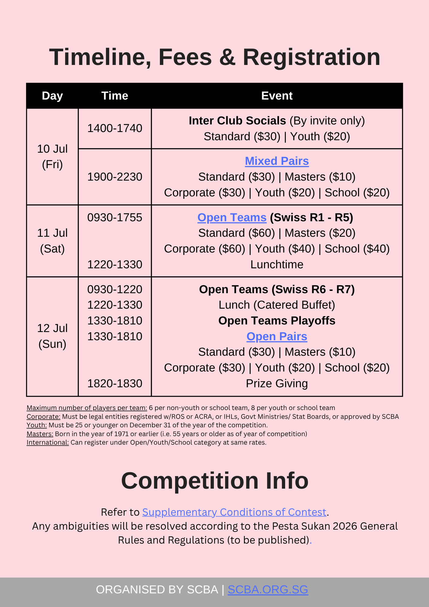 Any interested parties should contact Luwen at president@scba.org.sg as the registration deadline has passed, with two teams indicating interest before the deadline.